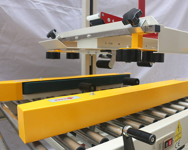 手工調(diào)節(jié)高度、寬度 根據(jù)紙箱規(guī)格手工調(diào)節(jié)機器寬度及高度,適合同一 時段同種規(guī)格紙箱封箱